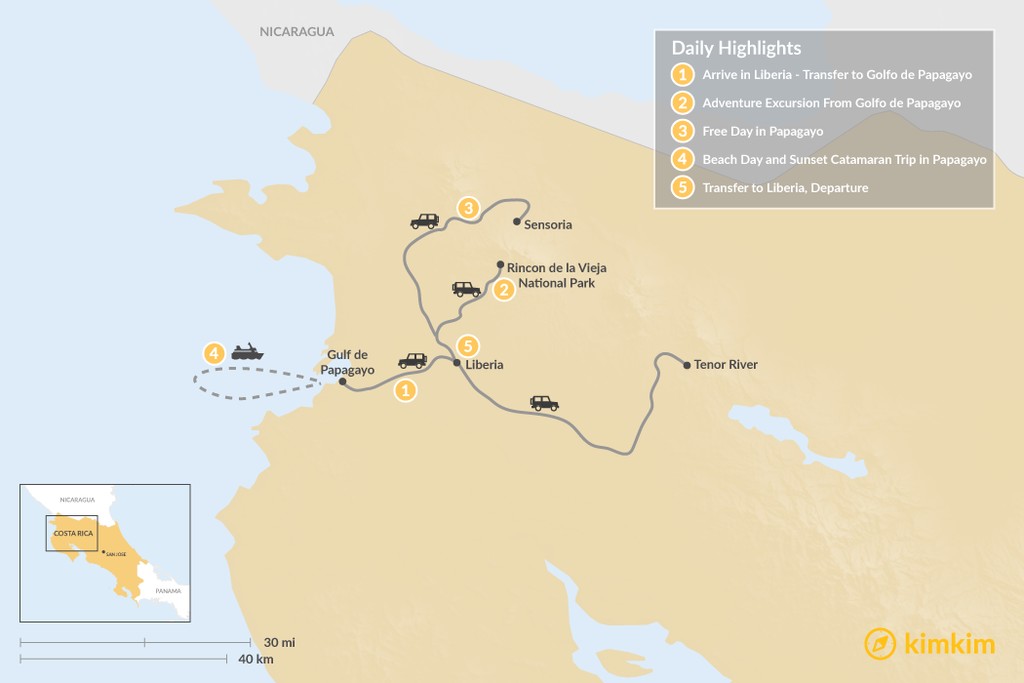 Map of Explore Guanacaste from Liberia – 5 Days