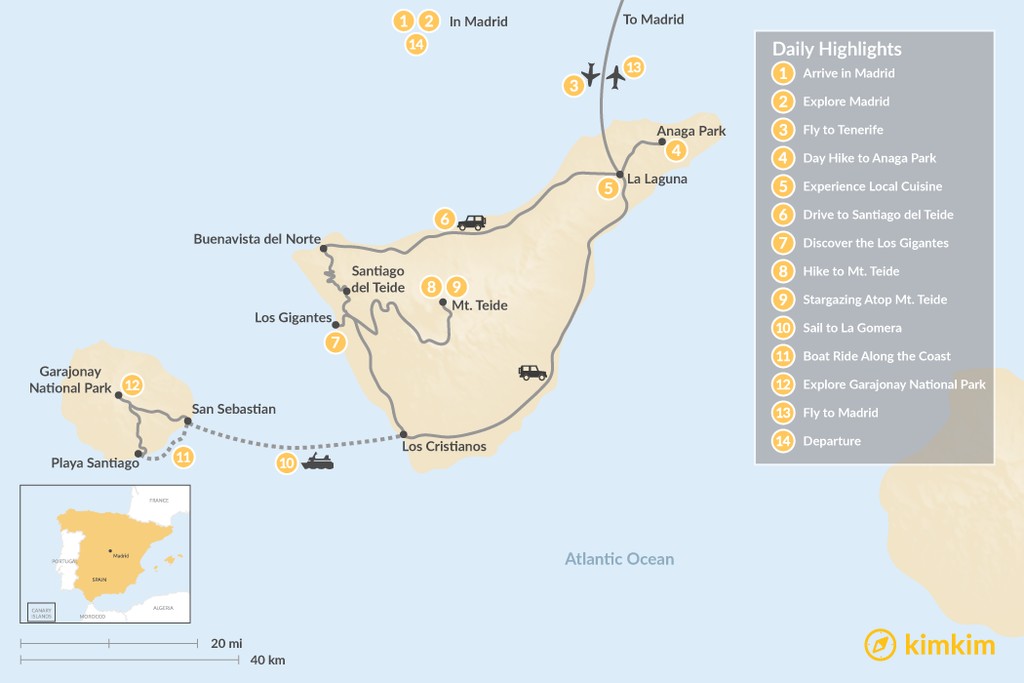 Map of Explore Madrid and the Canary Islands: Tenerife and La Gomera – 14 Days