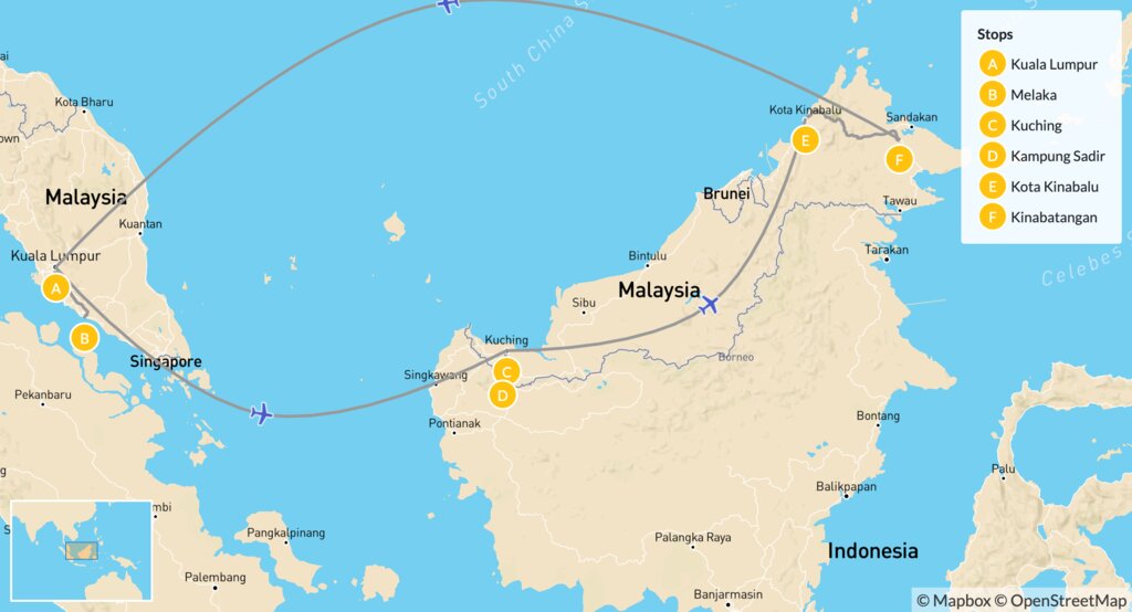 | Day 1 | Arrive in Kuala Lumpur, Transfer to Melaka, Optional Walking Tour | Melaka |