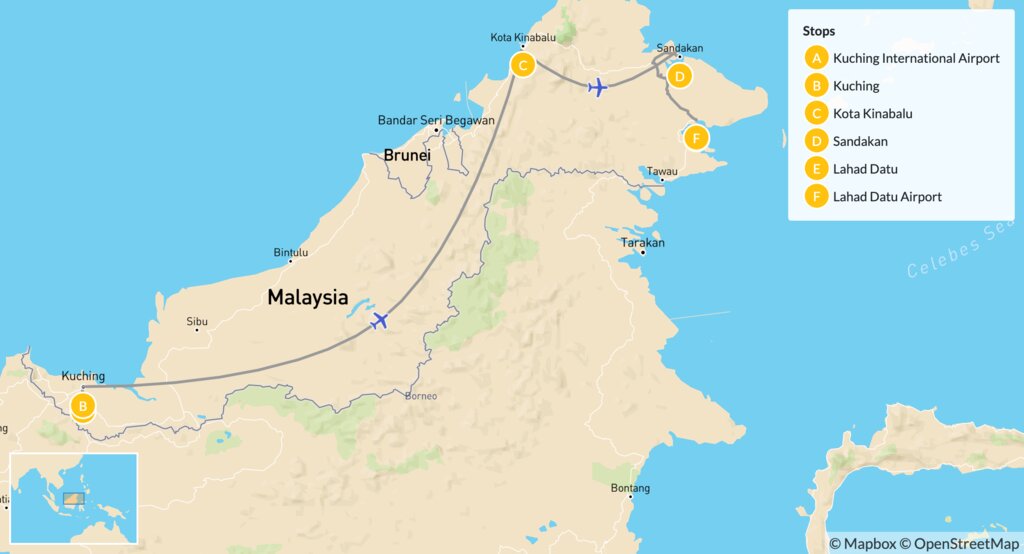 Map of Explore Malaysian Borneo’s Wild Heart – 14 Days