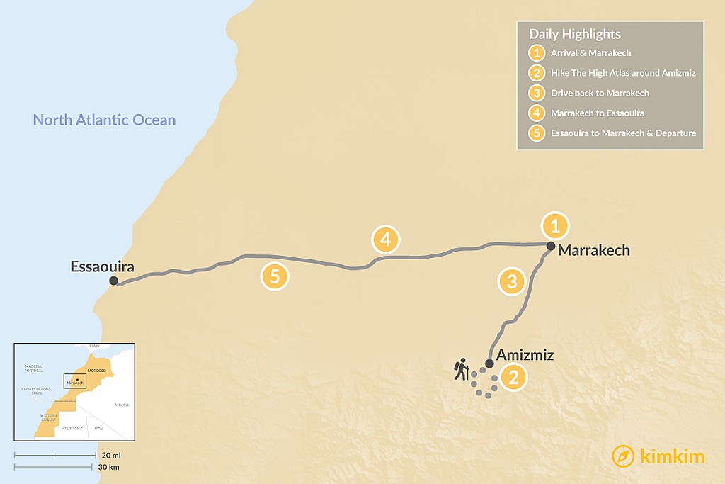 Map of Explore Marrakech, Atlas Hiking & the Coast – 5 Days