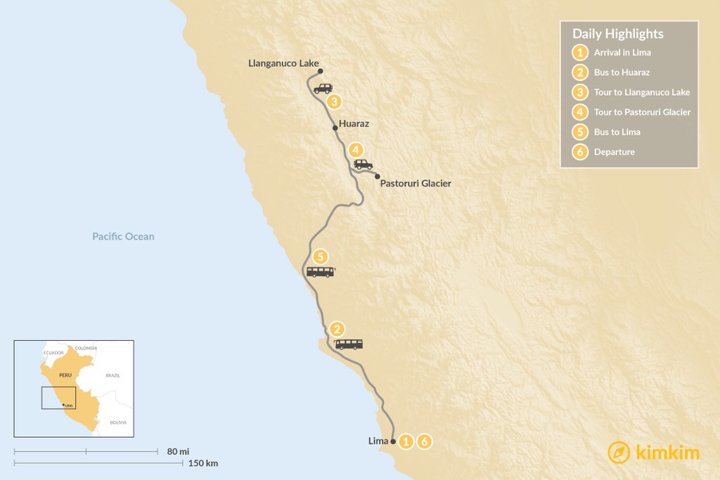 | Day 2 | Bus from Lima to Huaraz | Lima |