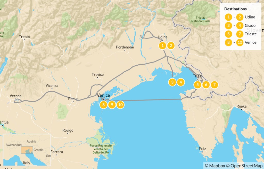 Map of Explore Northern Italy: Trieste, Venice, & More – 11 Days