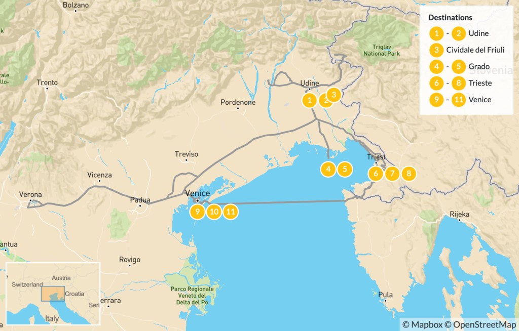 Map of Explore Northern Italy: Trieste, Venice, & More – 12 Days