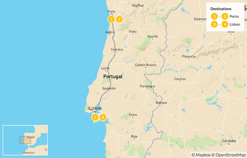 Map of Explore Porto, Lisbon & Sintra – 5 Days