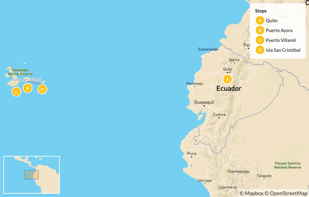 Map of Explore Quito & the Galápagos Islands – 12 Days