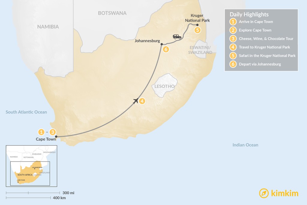 Map of Explore South Africa: Cape Town & Kruger Safari – 6 Days