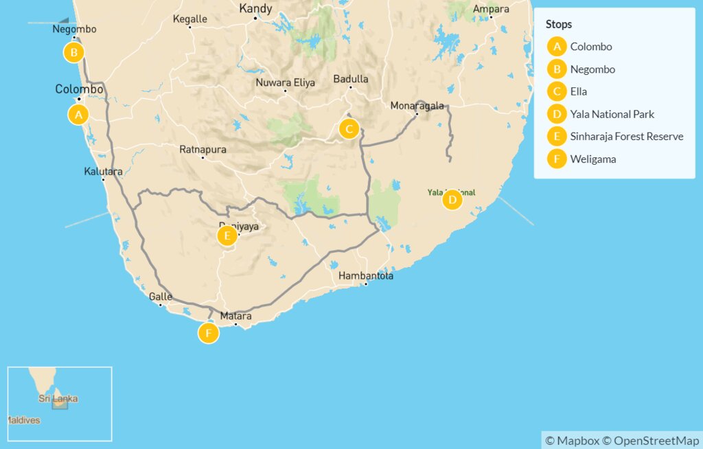 Map of Explore Sri Lanka’s Hill Country, Rainforest & Coast – 11 Days
