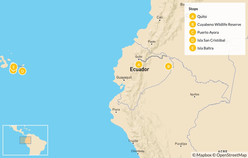Map of Explore the Amazon & Galápagos Islands – 12 Days