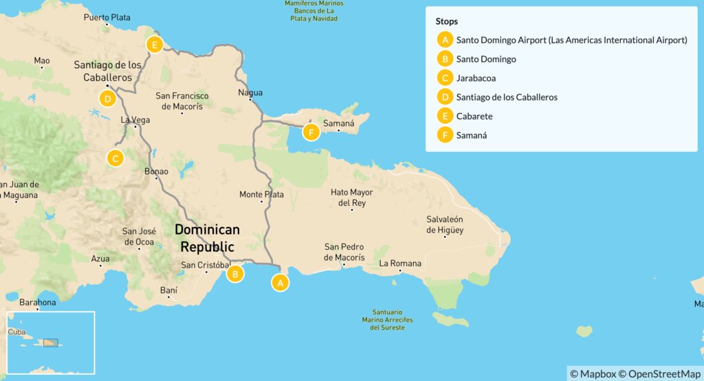 Map of Explore the Beaches, Mountains & Waterfalls of the Dominican Republic – 14 Days