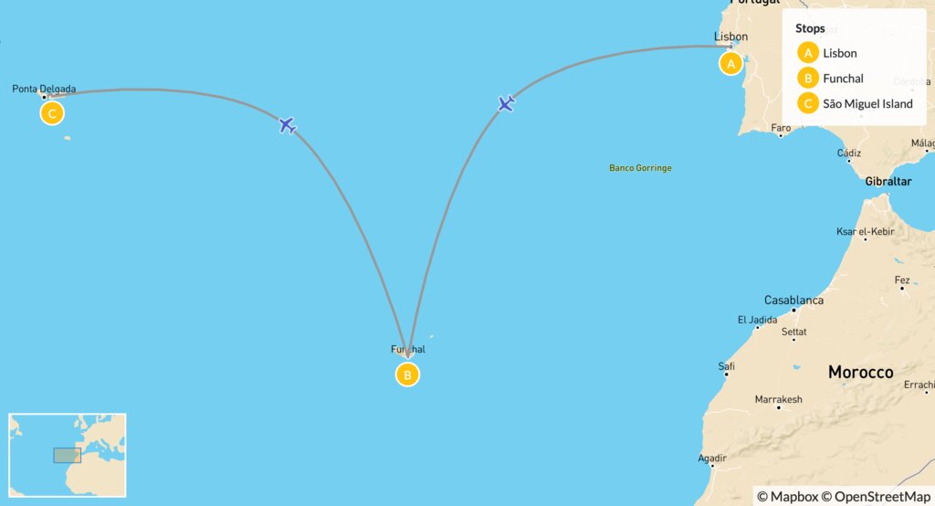 Map of Explore the Beauty of Portugal: Lisbon, Madeira & São Miguel – 14 Days