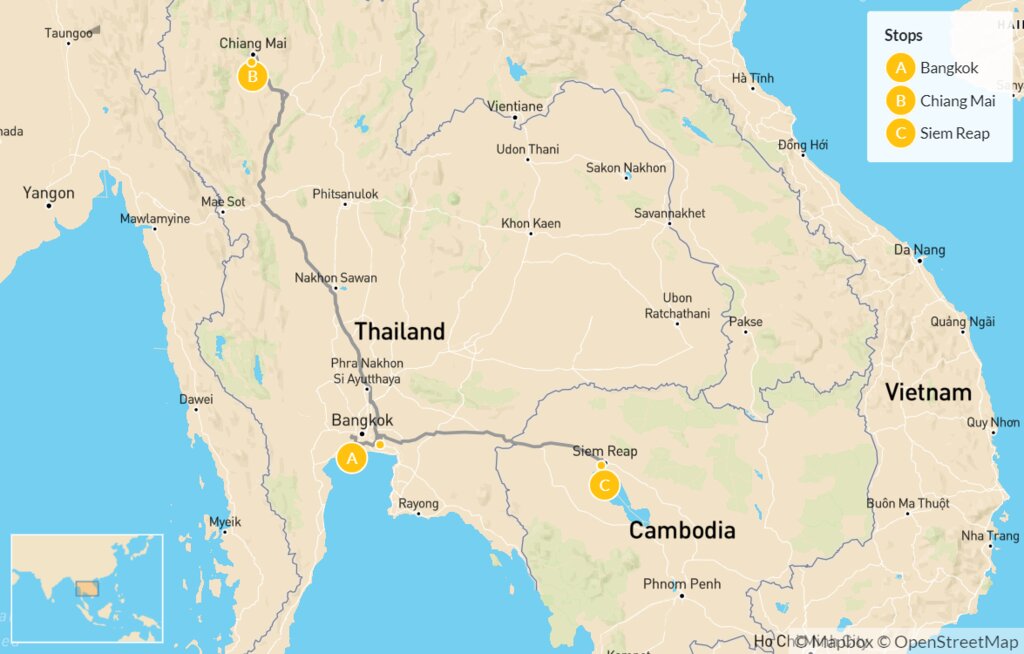 Map of Explore the Culture & History of Thailand & Cambodia – 10 Days