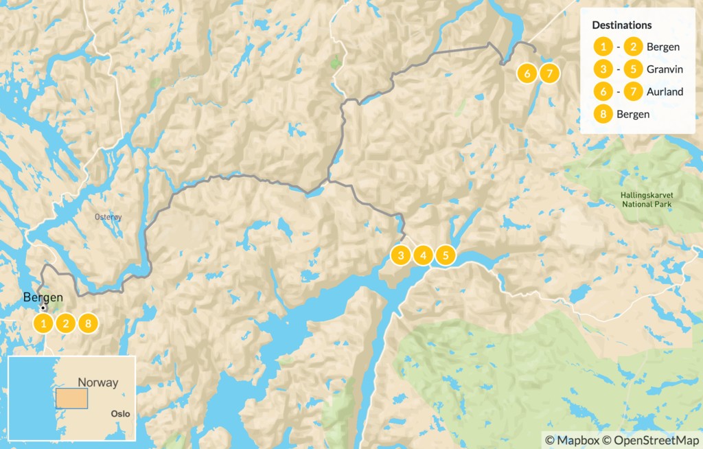 Map of Explore the Hardangerfjord & Sognefjord – 9 Days