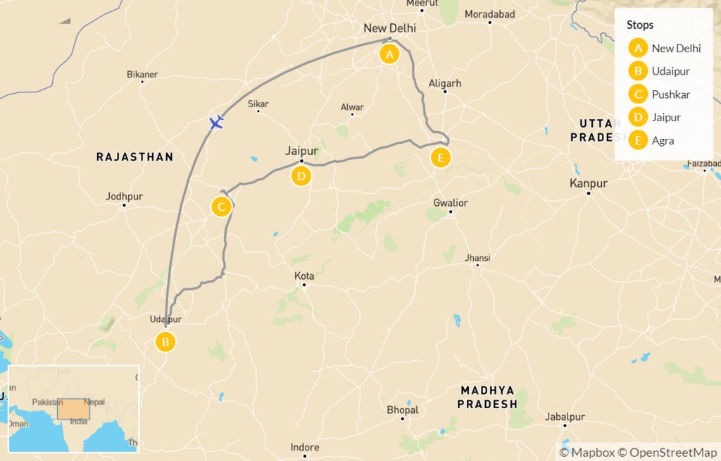 Map of Explore the Heritage & Cuisine of Rajasthan – 9 Days