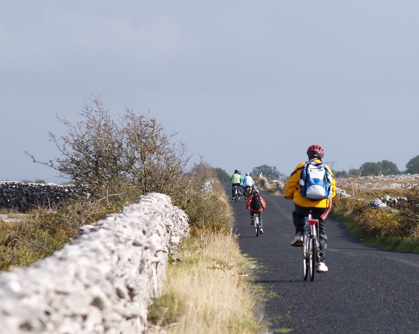 Today, as you cycle through Northern Clare, you’ll experience one of the most spectacular regions of Ireland, the Burren. The landscape is filled with limestone slabs, rocky hillsides, and a variety of ancient rock formations. You’ll have the freedom to park your bike and walk across sections of the slabs and explore the amazing flora hidden in the cracks and crevices.