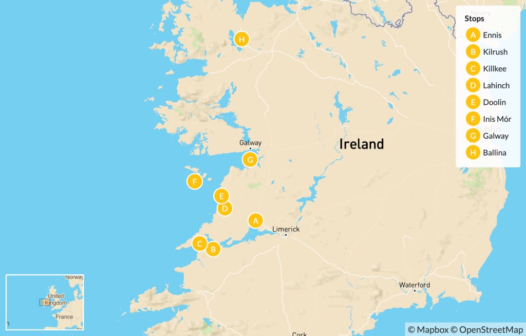 | Day 5 | Lahinch to Doolin via the Cliffs of Moher | Doolin |