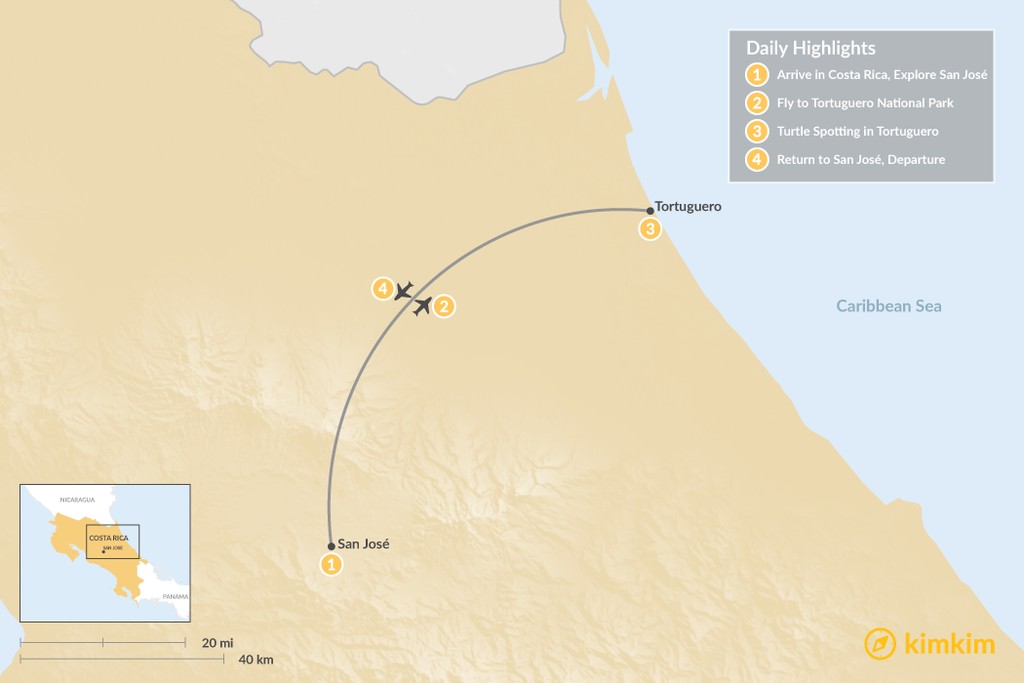 Map of Explore Tortuguero from San José – 4 Days