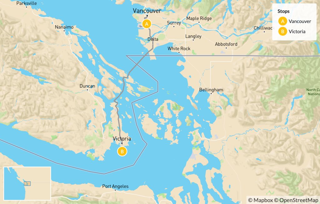 Map of Explore Vancouver & Victoria: Cuisine, Culture & Natural Landscapes – 6 Days