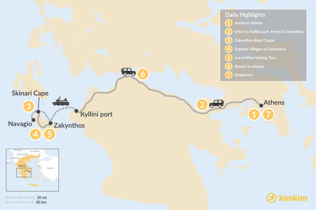 | Day 2 | Ferry to Zakynthos | Zakynthos |