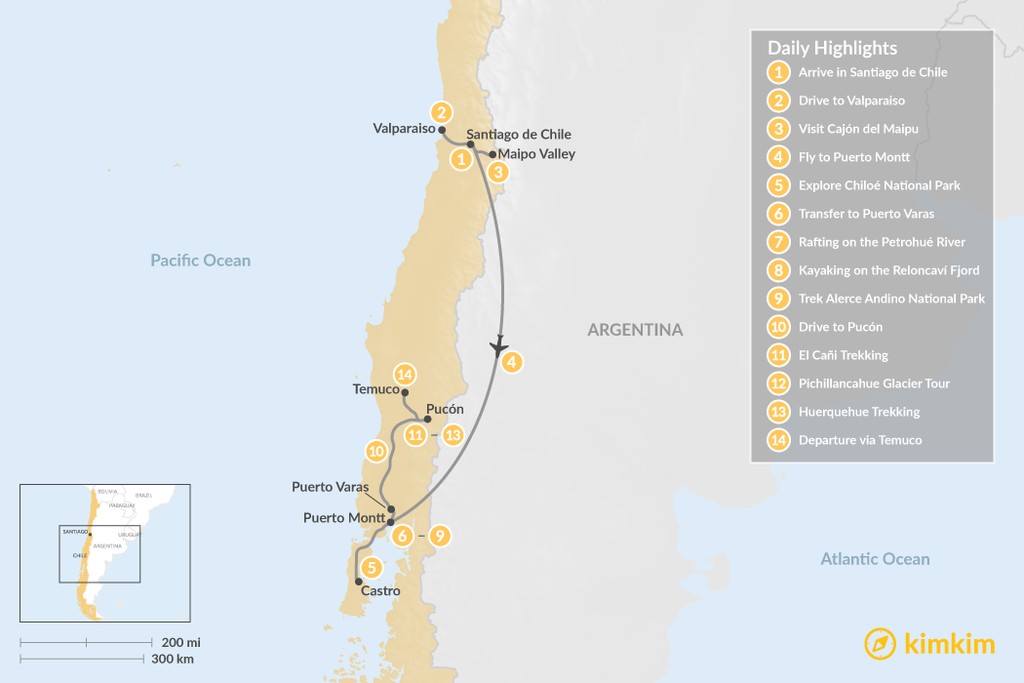 Map of Exploring Santiago & Chile’s Lake District – 14 Days