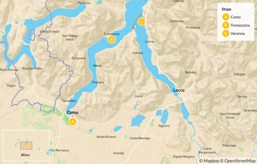 | Day 1 | Arrive in Milan, Transfer to Lake Como | Como |