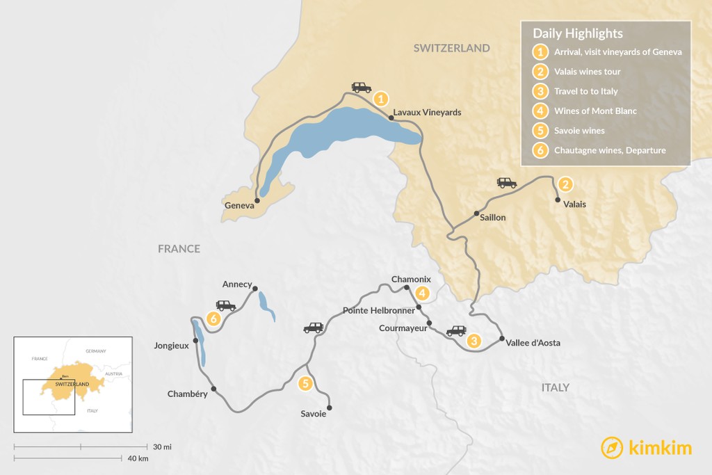 Map of Exploring the Wine Regions of Mont Blanc – 6 Days