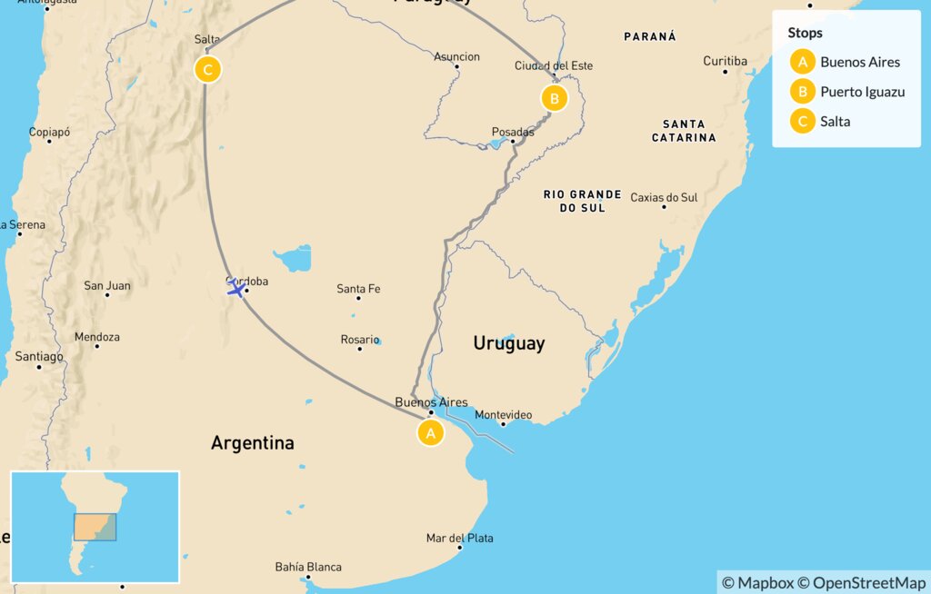 Map of Family Adventure in Argentina: Buenos Aires, Puerto Iguazú & Salta – 10 Days