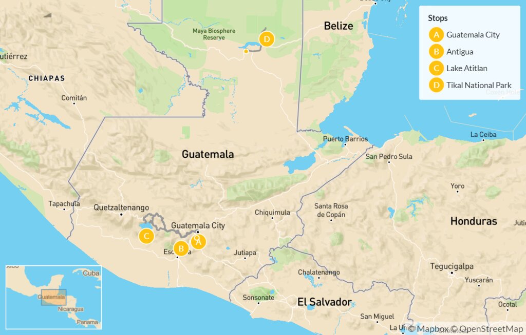 Map of Family Adventure in Guatemala: Temples, Pyramids & Wildlife – 7 Days