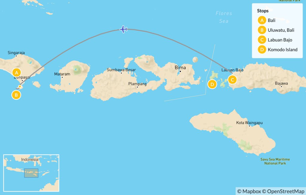 Map of Family Adventure in Indonesia: Bali, Flores & Komodo National Park – 7 Days