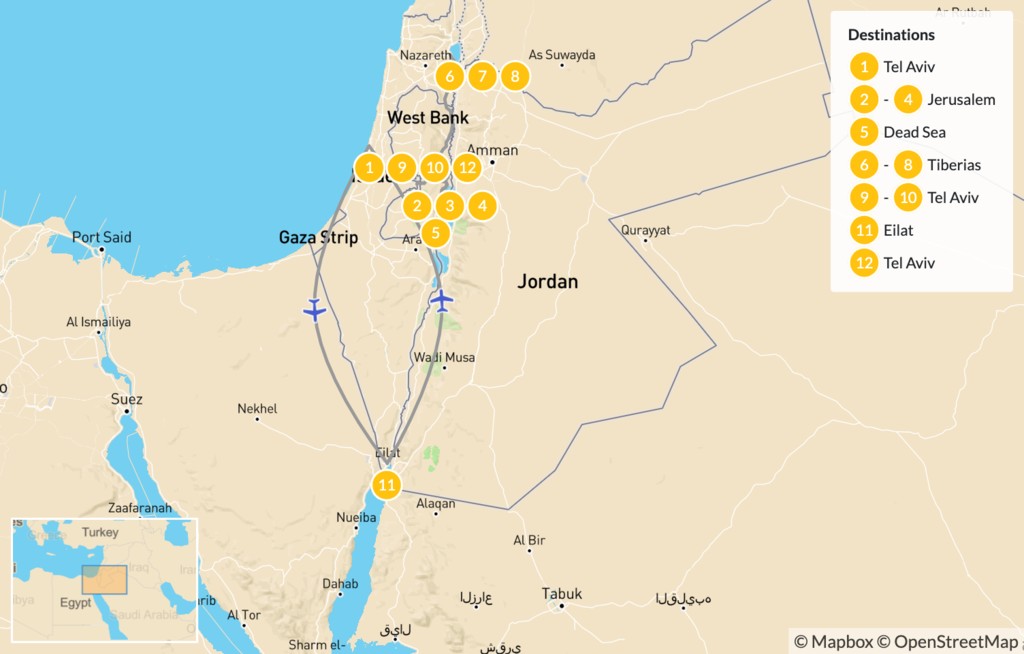 In the evening, transfer for Eilat Airport for a late domestic flight back to Tel Aviv.
