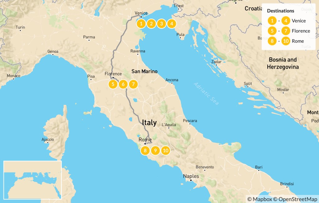 Map of Family Adventure in Italy: Venice, Florence, Rome – 11 Days