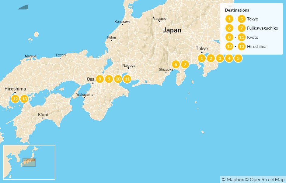 | Day 1 | Arrive in Tokyo | Tokyo |