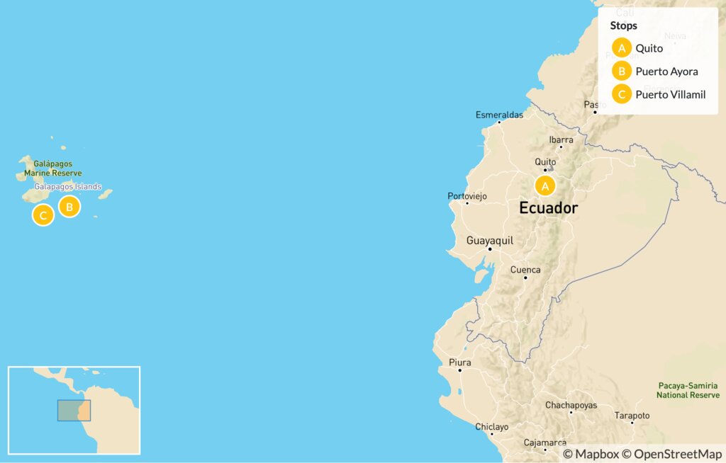Map of Family Adventure in the Galápagos: Snorkeling, Kayaking & Hiking – 7 Days