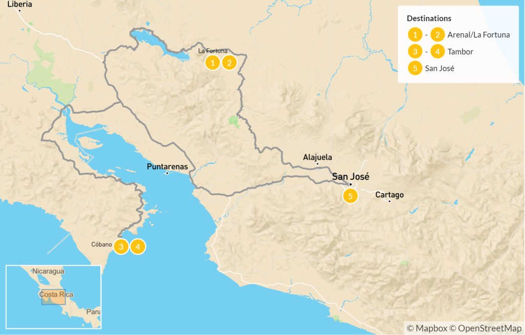 Map of Family Costa Rica Getaway: Arenal & Tambor Beach – 6 Days