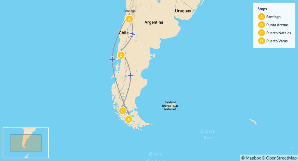 Map of Family Discovery of Chilean Patagonia & the Lake District – 10 Days