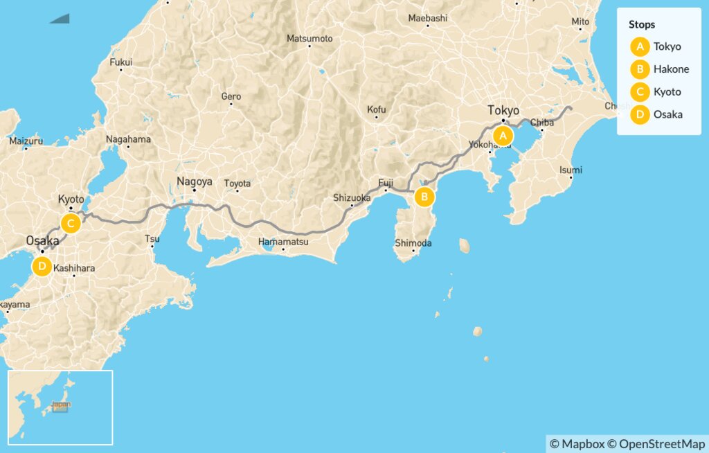 Map of Family Discovery of Japan: Cultural Excursions, Animé Fun & the Great Outdoors – 13 Days