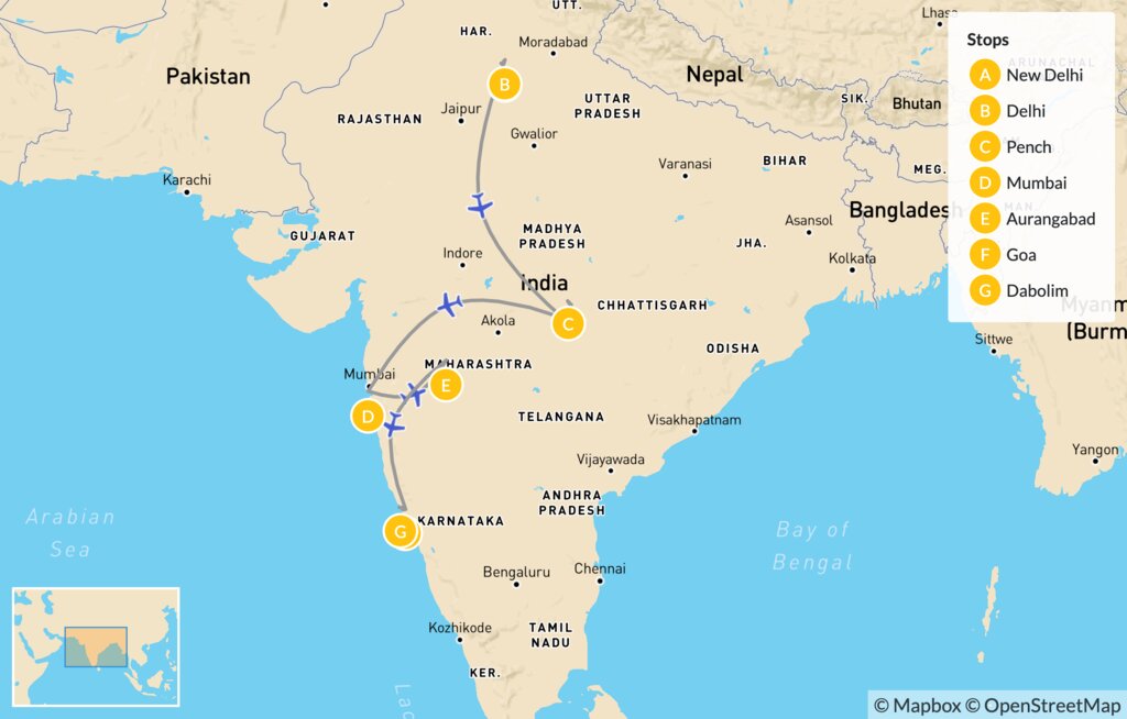 Discover the many faces of India with your family on this 14-day adventure that starts in the bustling city of Delhi. See historic sites and landmarks both on foot and via a rickshaw tour, then it’s off to the jungles of Pench National Park for wildlife sightings of tigers, leopards, monkeys, and more! Take in the sights, sounds, and smells of Mumbai, visit the ancient caves of Ellora and Ajanta, see lounging crocodiles on Divar Island, and relax, play, and surf on the pristine beaches of Goa.