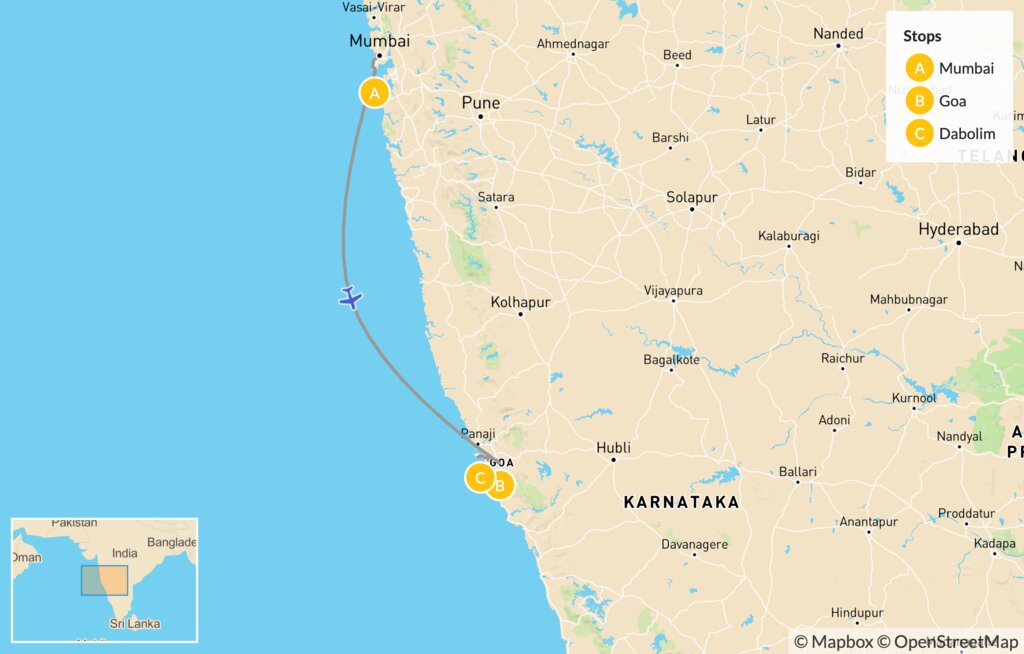 Map of Family Exploration of India: Mumbai & Goa – 7 Days