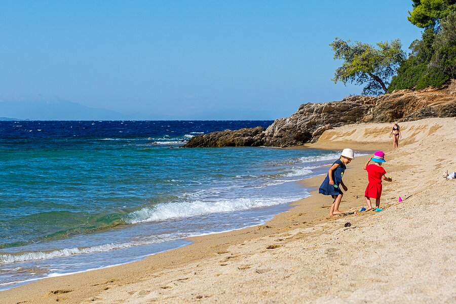 Mostly protected from winds, the beaches of Chalkidiki feature shallow, turquoise waters. For the best experience, drive along the eastern side of the “second leg” (as the locals call it). You’ll have plenty of options for beaches with perfect swimming conditions and beautiful surroundings. The Vourvourou, Armenistis, and Kavourotrypes beaches are all excellent choices.