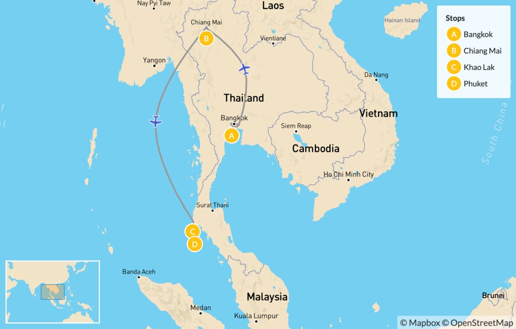 Map of Family Exploration of Thailand: Bangkok, Chiang Mai & Khao Lak – 10 Days