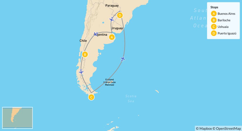 Map of Family-Friendly Argentina: Buenos Aires, Patagonia & Iguazú Falls – 14 Days