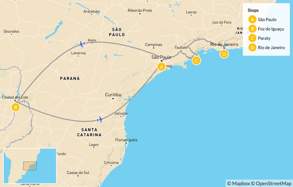 Map of Family-Friendly Brazil: Historic Cities, Natural Wonders & White-Sand Beaches – 14 Days