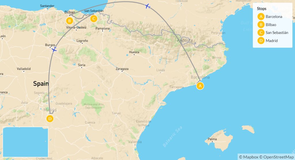 Map of Family-Friendly Highlights of Barcelona, Northern Spain & Madrid – 11 Days