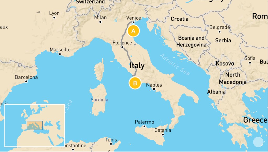 Map of Family-Friendly Highlights of Italy: Venice & Rome – 7 Days