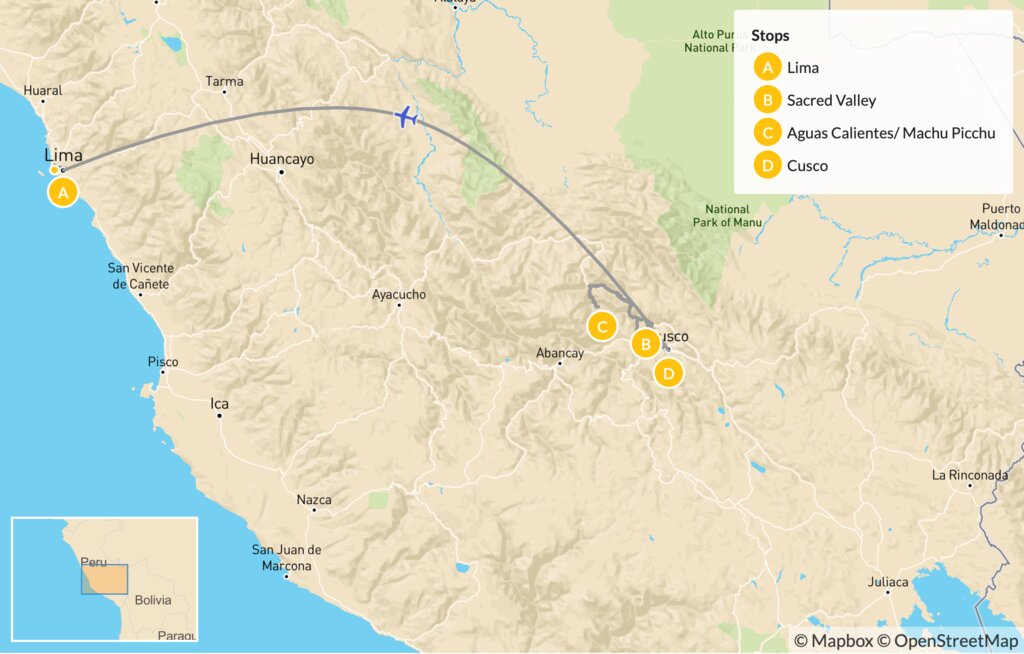 Map of Family-Friendly Peru Adventure: Lima, Sacred Valley & Cusco – 10 Days