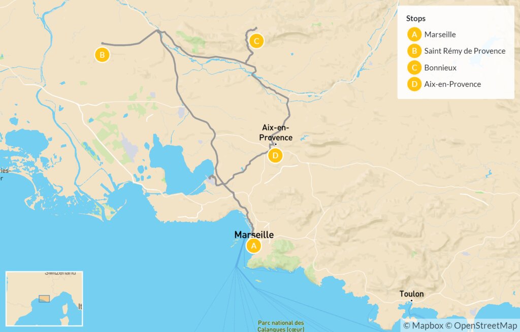 | Day 8 | Drive to Aix-en-Provence, Cultural Tour | Aix-en-Provence |