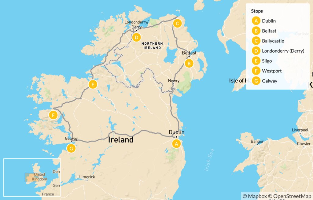 Map of Family-Friendly Travels in Northern Ireland & the West – 14 Days