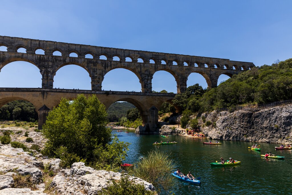 Take a day trip to Avignon and the Provençal Gard area, an easy 30-minute drive from Saint-Rémy-de-Provence. This region has some of France’s most amazing historic sites and beautiful natural landscapes. Visit The Pont du Gard, a 160-foot (48 m) ancient Roman aqueduct bridge, built to carry water and supplies to the Roman colony of Nemausus. The bridge crosses the river Gardon, and is a popular swimming area, with warm, shallow waters that are perfect for the kids. Kayak rentals are also available if you’d like to cruise under the bridge.