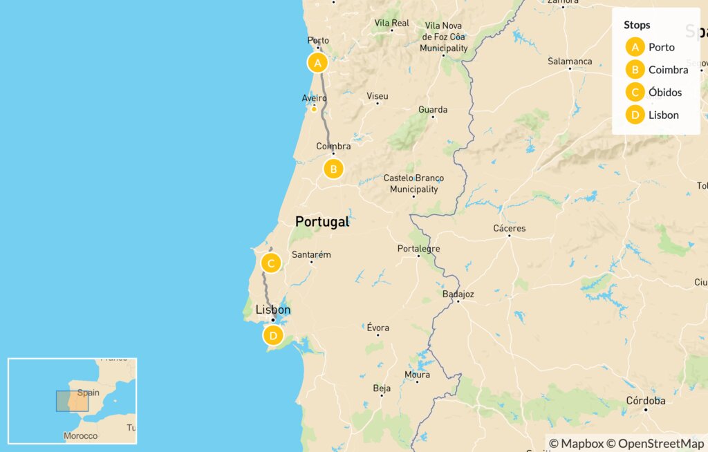 Map of Family Fun & Culture in Portugal: Porto, Coimbra, Óbidos & Lisbon – 10 Days