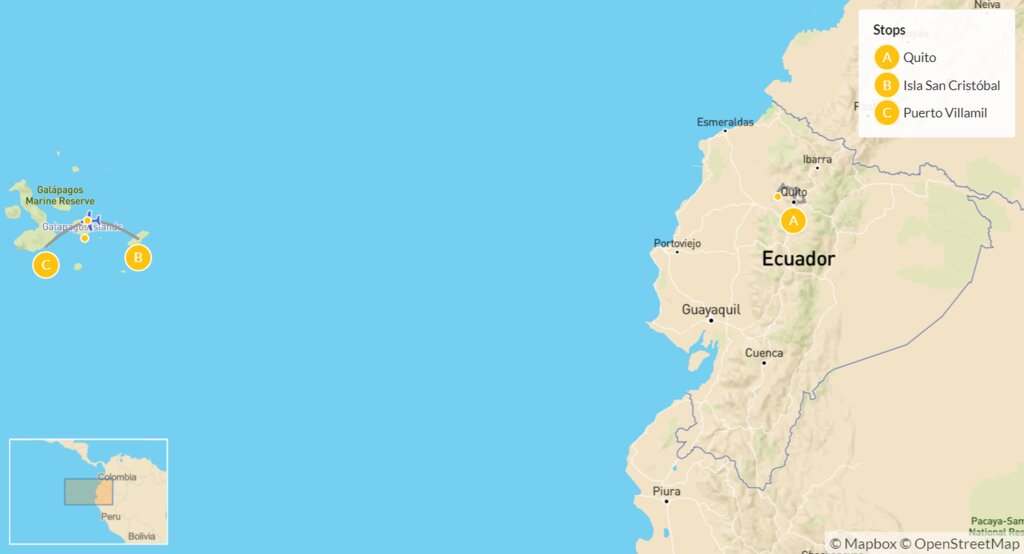 Map of Family Fun in Ecuador & the Galápagos – 14 Days